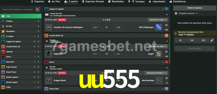 O uu555 oferece uma grande seleção de opções de apostas em e-sports com probabilidades competitivas